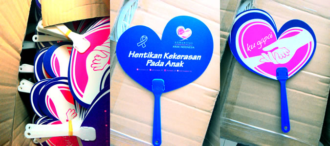 Kipas Plastik Hentikan Kekerasan Pada Anak – Selesai dikerjakan beberapa waktu lalu, baru kami posting saat ini. Menggunakan bahan plastik pp 0,6. Dengan bentuk love, mau order kipas seperti ini? Klik disini untuk melihat spesifikasi dan list harga.